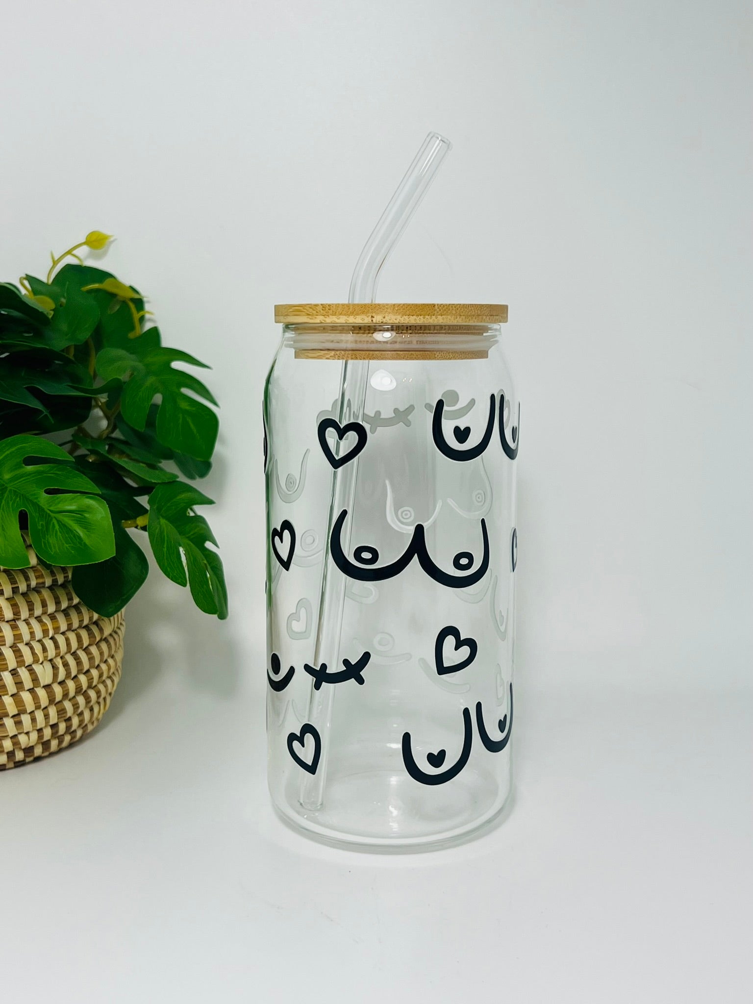 Een bamboe deksel en glazen rietje worden meegeleverd voor een stijlvolle en duurzame drinkervaring.