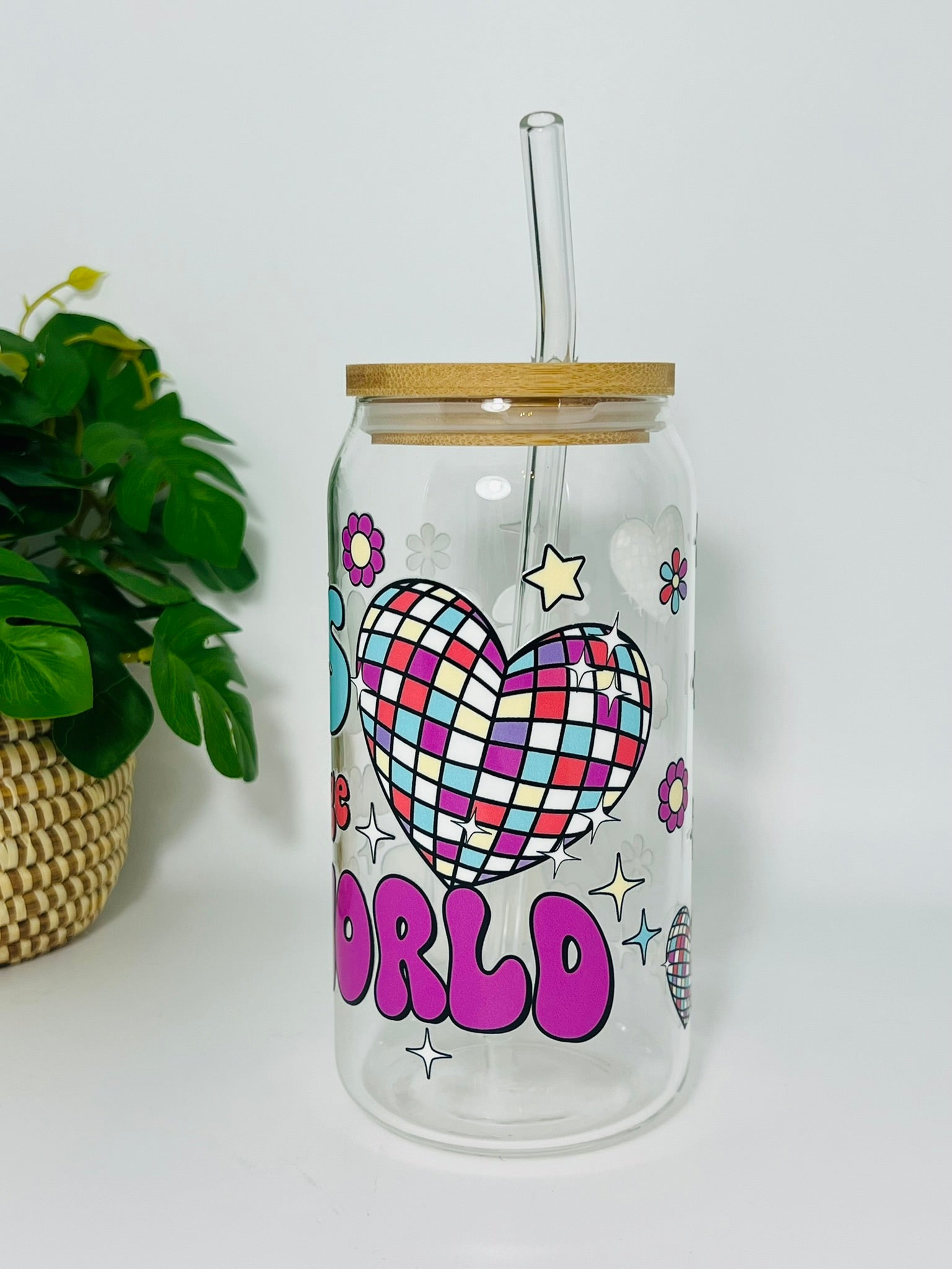 Een bamboe deksel en glazen rietje worden meegeleverd voor een stijlvolle en duurzame drinkervaring.