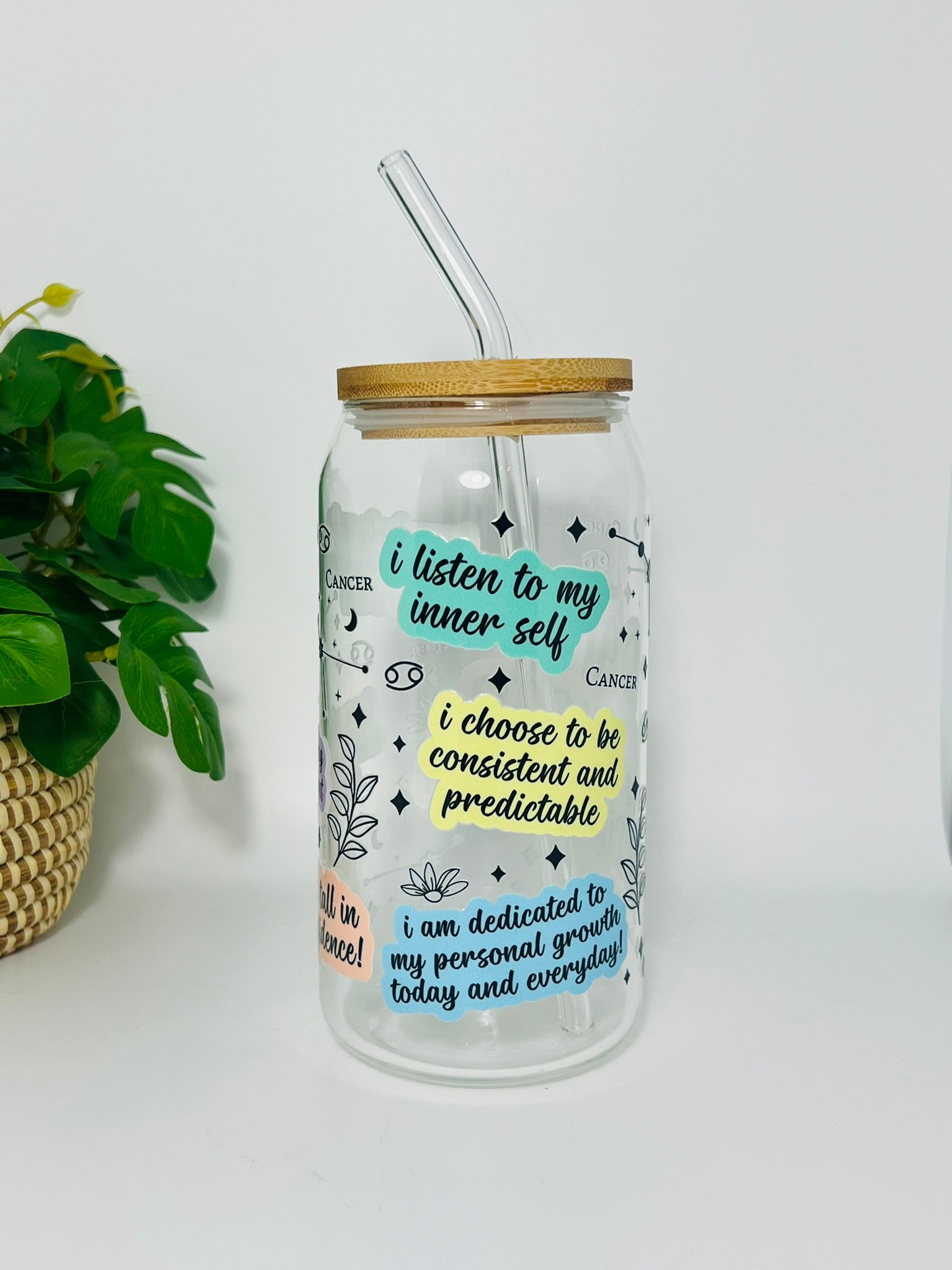 Een bamboe deksel en glazen rietje worden meegeleverd voor een stijlvolle en duurzame drinkervaring.