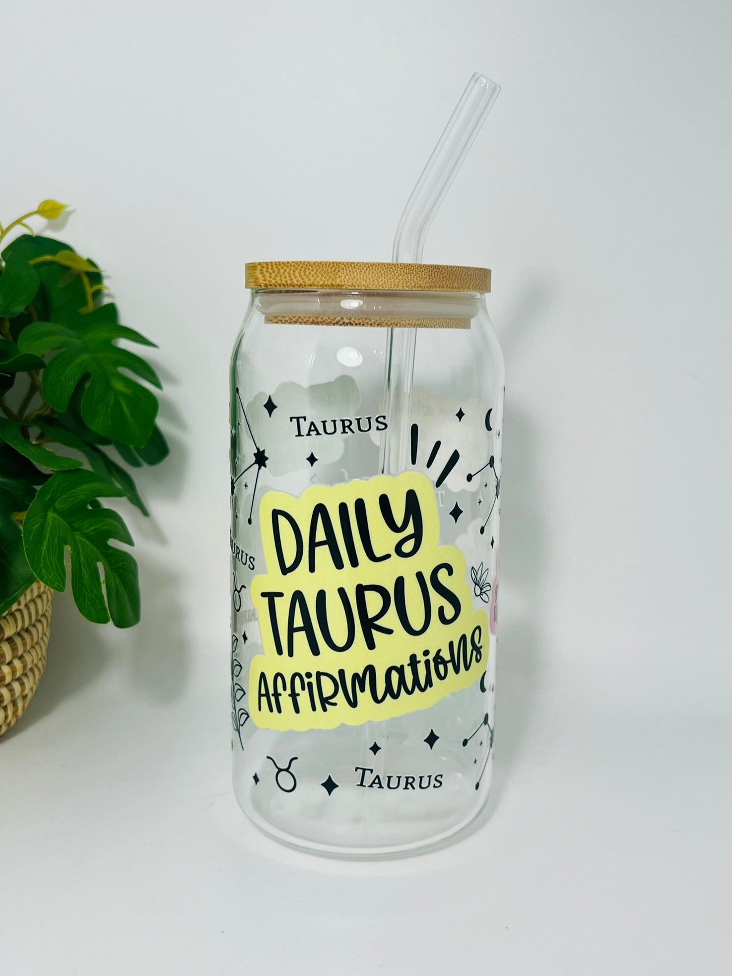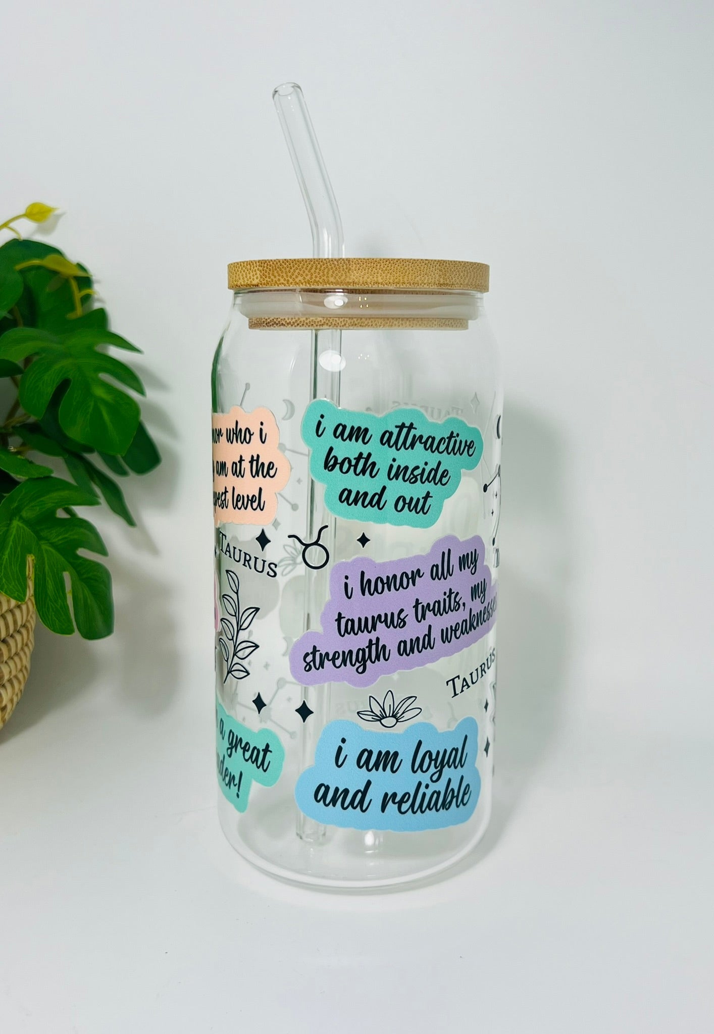 Een bamboe deksel en glazen rietje worden meegeleverd voor een stijlvolle en duurzame drinkervaring.