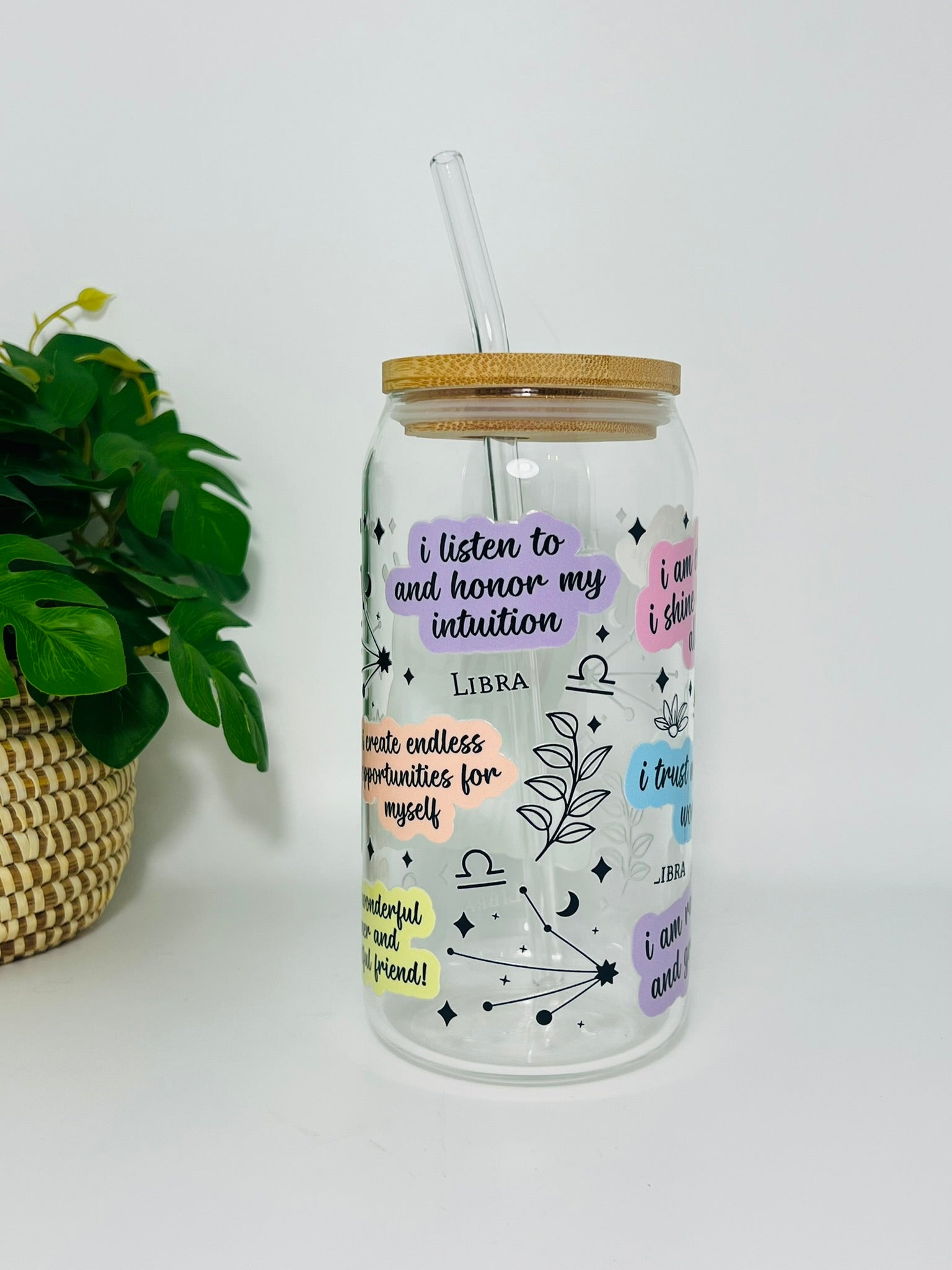 Een bamboe deksel en glazen rietje worden meegeleverd voor een stijlvolle en duurzame drinkervaring.