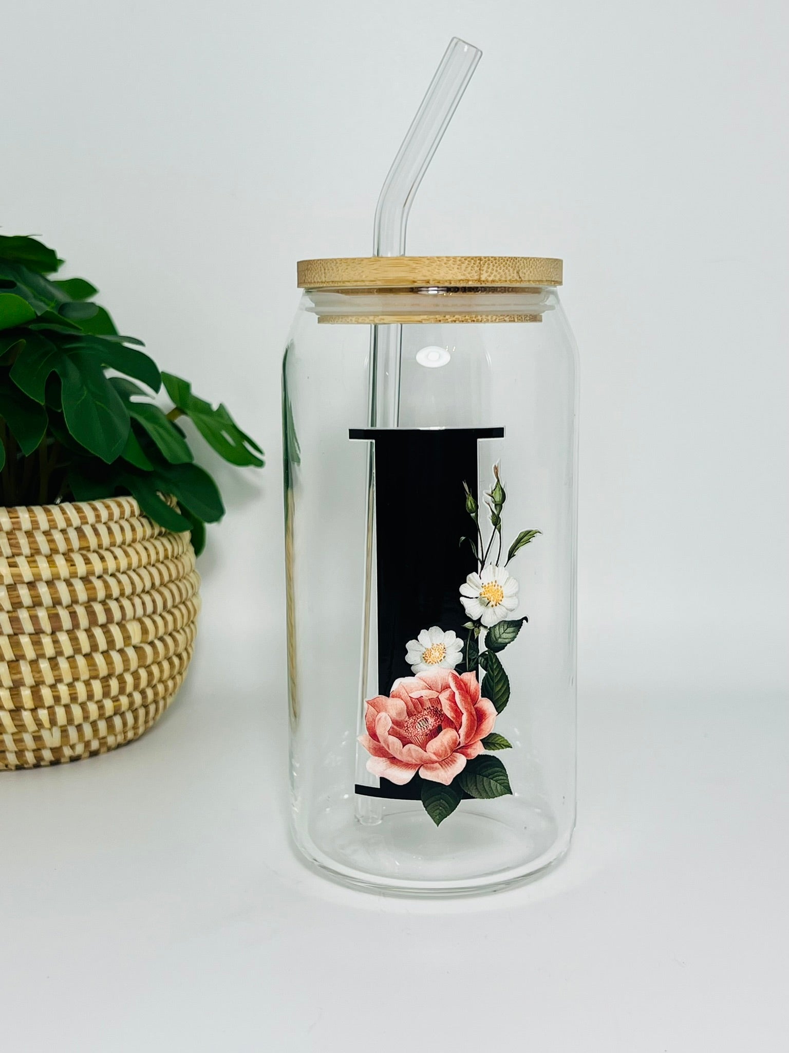 Een bamboe deksel en glazen rietje worden meegeleverd voor een stijlvolle en duurzame drinkervaring.