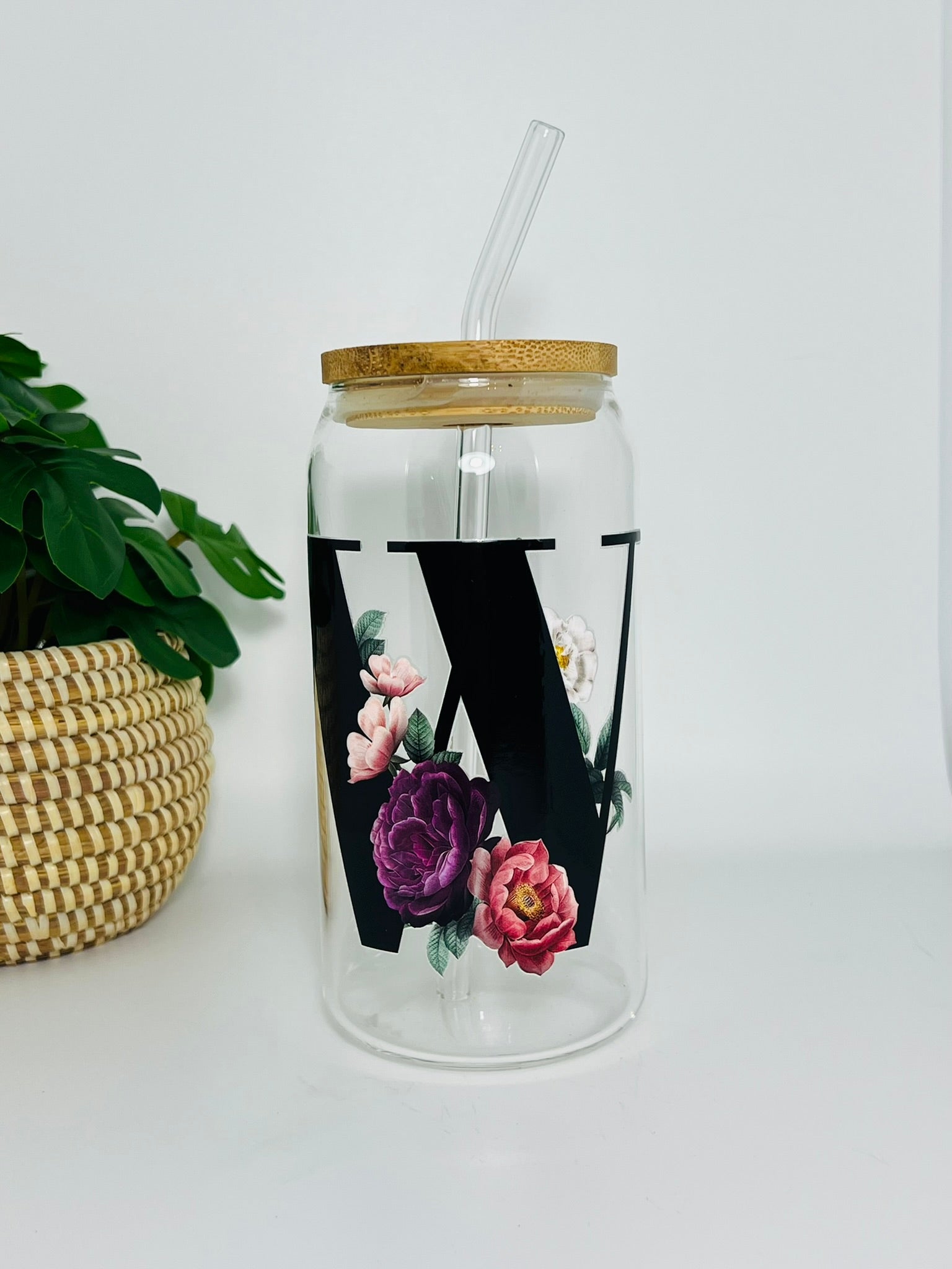 Een bamboe deksel en glazen rietje worden meegeleverd voor een stijlvolle en duurzame drinkervaring.