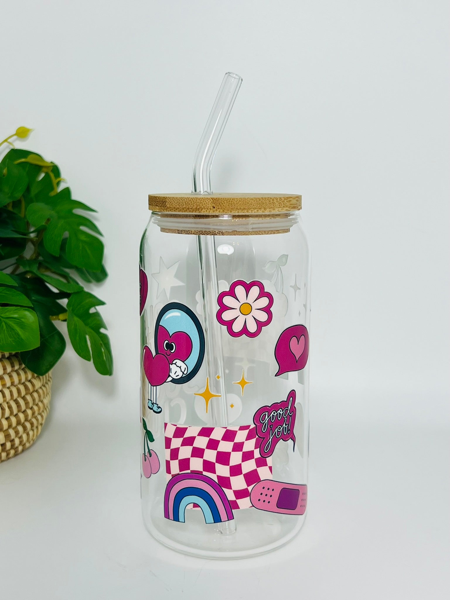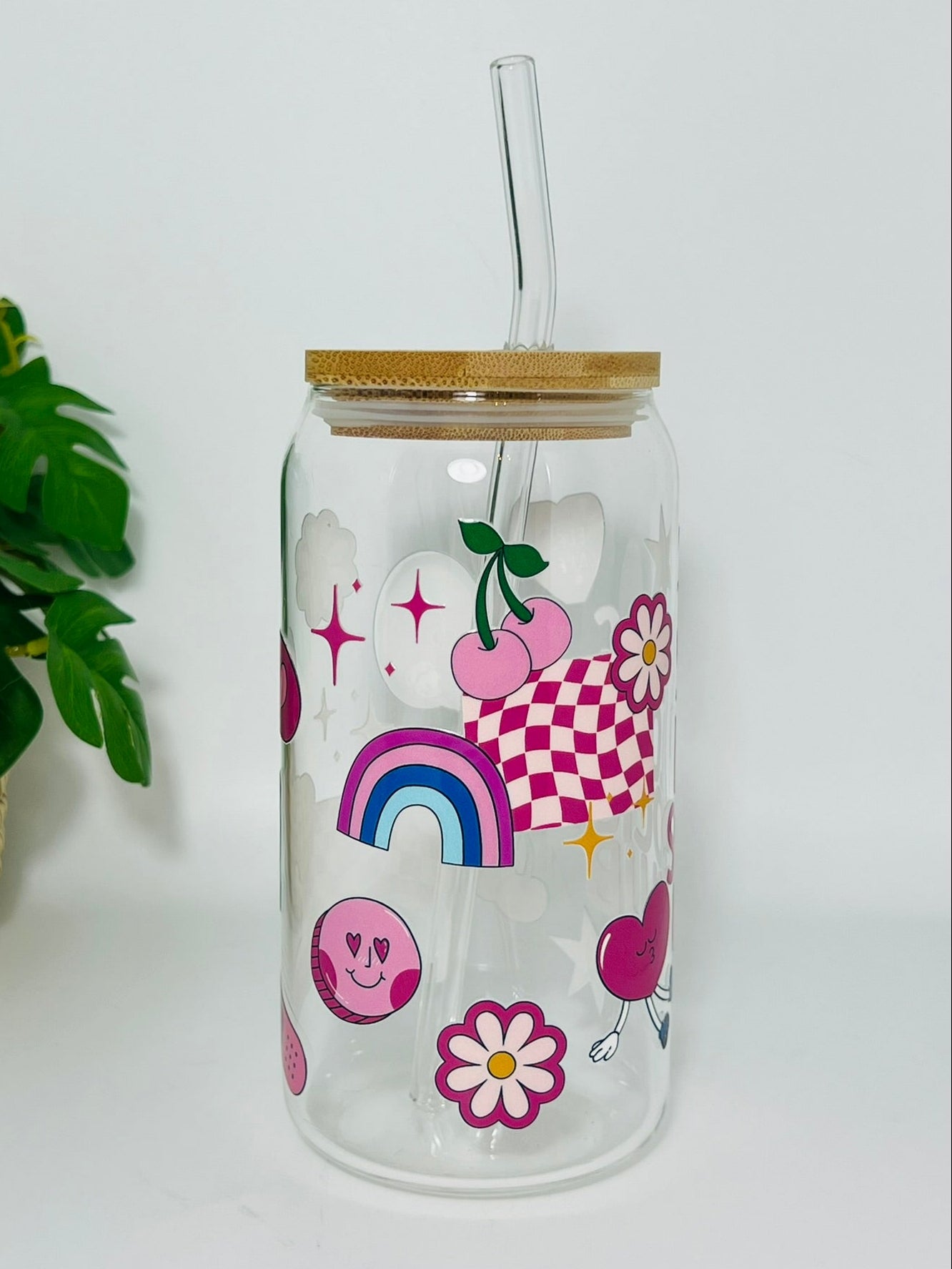 Een bamboe deksel en glazen rietje worden meegeleverd voor een stijlvolle en duurzame drinkervaring.